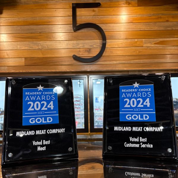 Since 2018 Midland Meat Company has consecutively won Gold in the Midland Reporter Telegram Readers' Choice Award's in both customer service and best meat.